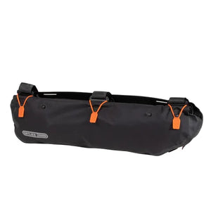 The Frame-Pack RC Toptube is the solution for everyone who likes to have access to their water bottles while also carrying gear inside the bikeframe triangle. This waterproof frame bag with roll closure is also ideal for full suspension mountain bikes, where space inside the frame’striangle is limited by the shocks.Part of ORTLIEB’s bikepacking series, this bag with roll closure meets the IP64 standard for waterproofness, meaning your gear is fullyprotected from an involuntary bath. The Frame-Pack RC Toptube enables heavy equipment such as tent poles, toolsor food to be carried within the frame triangle, maintaining the bike’s low center of gravity. The customizable, sturdy and strong Velcrofasteners enable simple and easy fastening, and an uncomplicated installation. The frame pack RC Toptube is made in Germany and PVC-free.