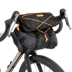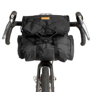 Our #carryeverything rackless bar bag connects securely to your handle bars for bike packing, touring or commuting. With no mounts or screws, the bag attaches in seconds to any bike. The holster fits up to a 14 litre dry bag and is secured with a hard-wearing buckle that’s easy to adjust, even whilst wearing gloves.