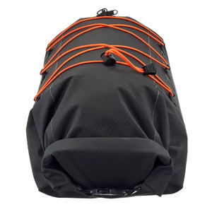 The valve on the Dry-Pack ensures that the contents can be easily compressed and the bag can be fixed to the luggagecarrier without wobbling with the help of the O-Straps. The O-Straps with a length of 520 mm and the specialclamping hooks (for tube diameters up to 10 mm) are ideal for quick attachment to the luggage carrier. The strapscan be variably positioned on the dry pack thanks to the daisy chains. An elastic cord fixation on the top for quickstowage of additional equipment.