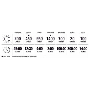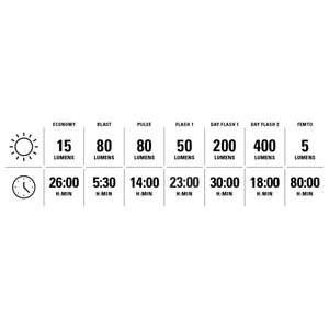 A GoPro mount option and compatibility with the Infinite Light Power Pack+, this front light offers versatile mounting choices and extended battery life. Rigorously tested to IPX7 Waterproofing standards, it is built to withstand various weather conditions. Choose from seven different output modes, from the attention-grabbing Daytime Flash Mode to the whopping 300-hour runtime Femto Mode, to suit your lighting needs. A versatile and replaceable strap secures it to a variety of handlebar sizes.