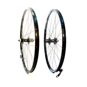 Novatec 2 sealed bearing 6 bolt disc brake hubs laced into 26 x 1.5" Alex EN24 rims which are V-brake compatable.